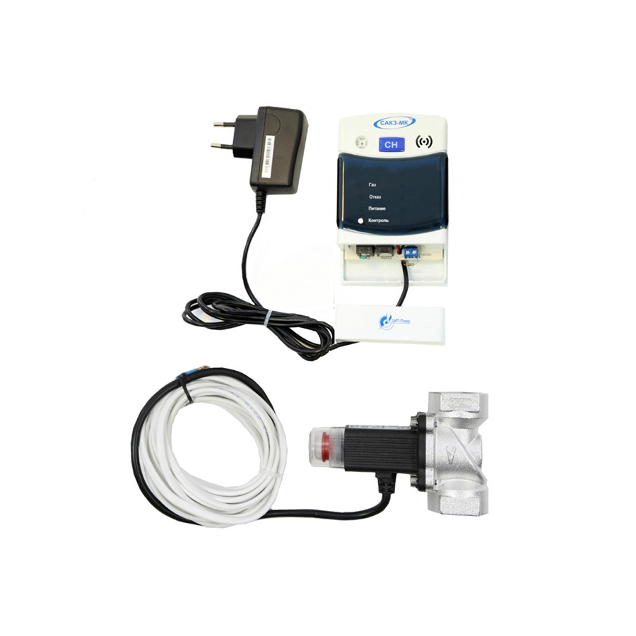Система автоматического контроля загазованности САКЗ-МК-1-1А DN 20 НД с клапаном КЗЭУГ-Б предназначена для:- непрерывного автоматического контроля содержания опасных концентраций углеводородного газа (природного по ГОСТ 5542-87, или метана СН4) в атмосфере помещений потребителей газа;- выдачи световой и звуковой сигнализации в случае возникновения в контролируемом помещении опасной концентрации газа;- перекрытия газопровода запорным клапаном при аварийной ситуации.В качестве дополнительных опций к системе САКЗ-МК-1-1Ai возможен дозаказ контрольного пульта ПК-Аi и дополнительного сигнализатора загазованности (без адаптера питания)К системе допускается подключать GSM-извещатель типа GSM5-105 или аналогичный, а также пожарные извещатели типа ИП212-34АВТ, ИП212-189АМ или ИП212-50М через адаптер-пульт АПК. При срабатывании пожарного извещателя запорный клапан закроется.