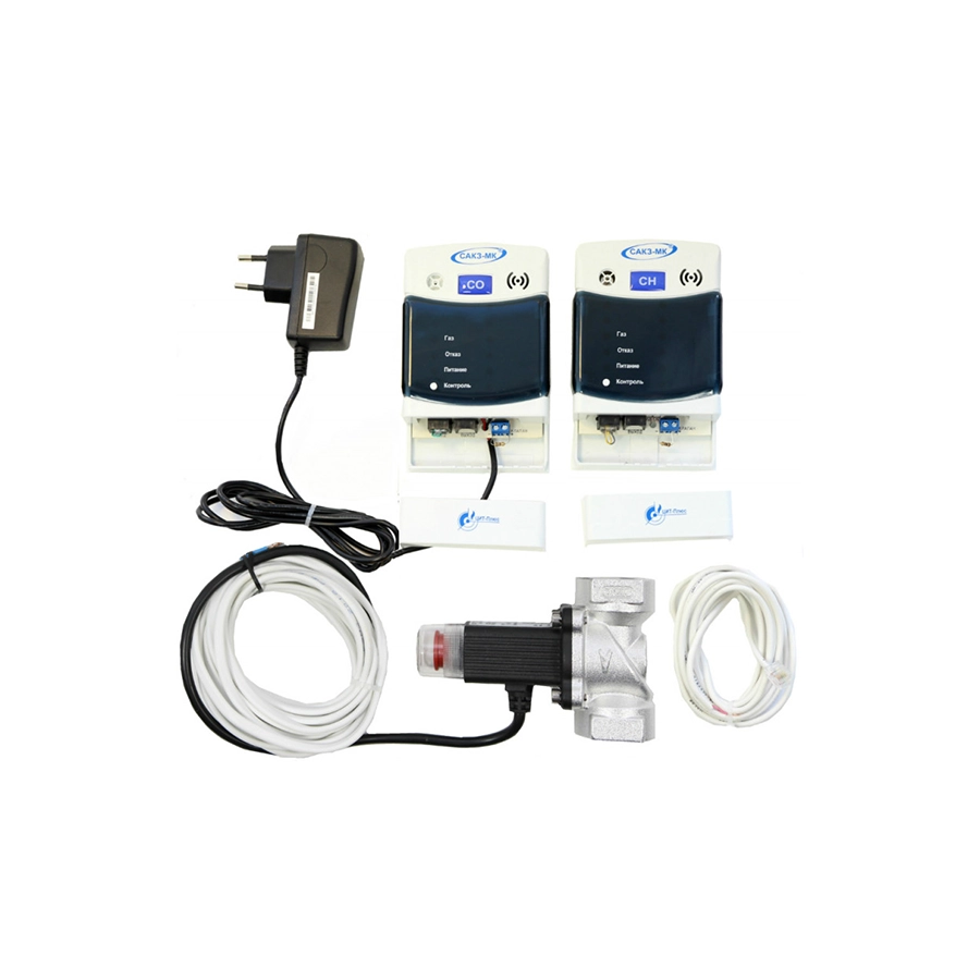 Система автоматического контроля загазованности Система автоматического контроля загазованности САКЗ-МК-2-1Аi DN 25 НД с клапаном КЗЭУГ-Б предназначена для:- непрерывного автоматического контроля содержания опасных концентраций углеводородного газа (природного по ГОСТ 5542-87, или метана СН4) в атмосфере помещений потребителей газа;- выдачи световой и звуковой сигнализации в случае возникновения в контролируемом помещении опасной концентрации газа;- перекрытия газопровода запорным клапаном при аварийной ситуации.В качестве дополнительных опций к системе САКЗ-МК-1-1Ai возможен дозаказ контрольного пульта ПК-Аi и дополнительного сигнализатора загазованности (без адаптера питания)К системе допускается подключать GSM-извещатель типа GSM5-105 или аналогичный, а также пожарные извещатели типа ИП212-34АВТ, ИП212-189АМ или ИП212-50М через адаптер-пульт АПК. При срабатывании пожарного извещателя запорный клапан закроется.
