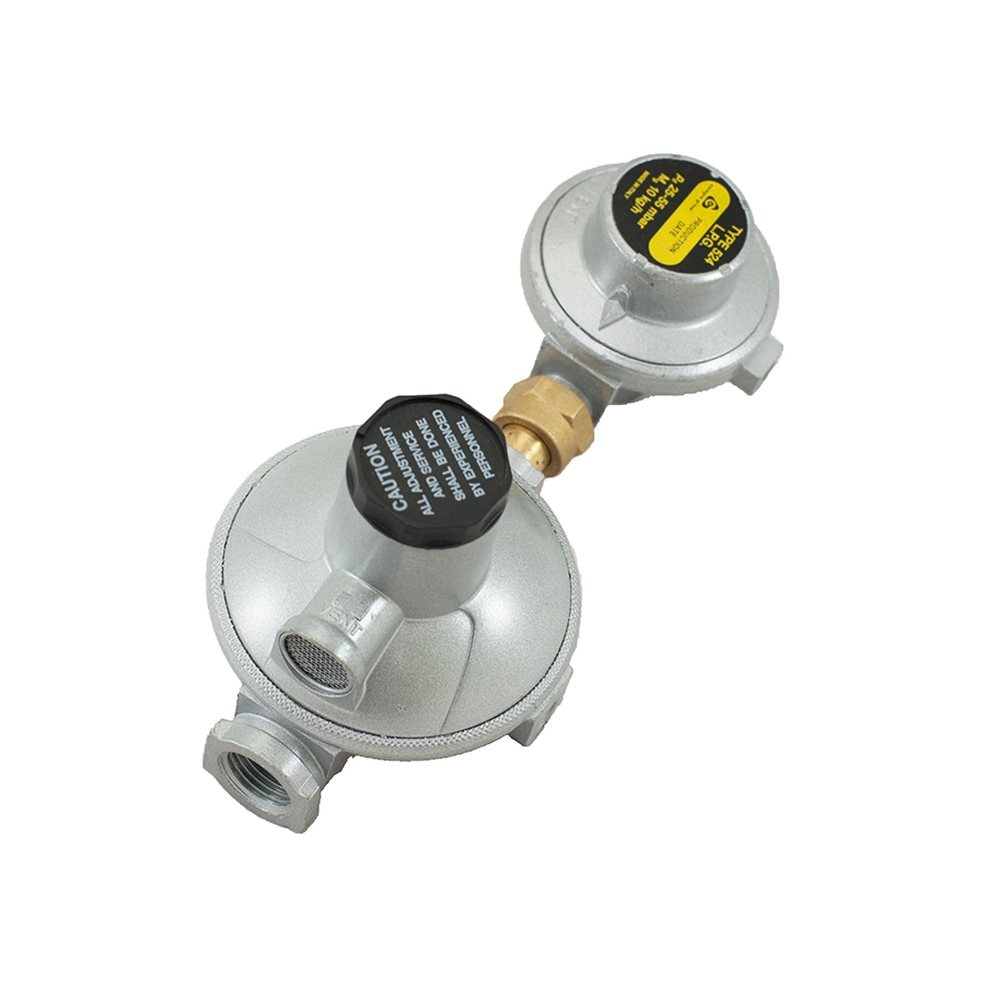 Двухступенчатый регулятор газа, предназначен для регулирования давления газа. Устанавливается непосредственно на вентиль паровой фазы на газгольдере. Имеется регулировочный винт для точной настройки давления.